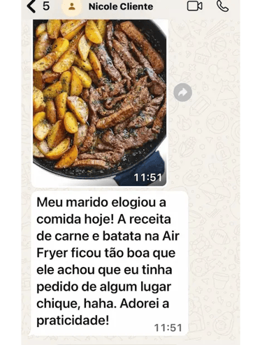 "Este cardápio nasceu da minha própria frustração. É o guia que eu gostaria de ter recebido quando comprei minha primeira Air Fryer. É simples, direto e funciona."